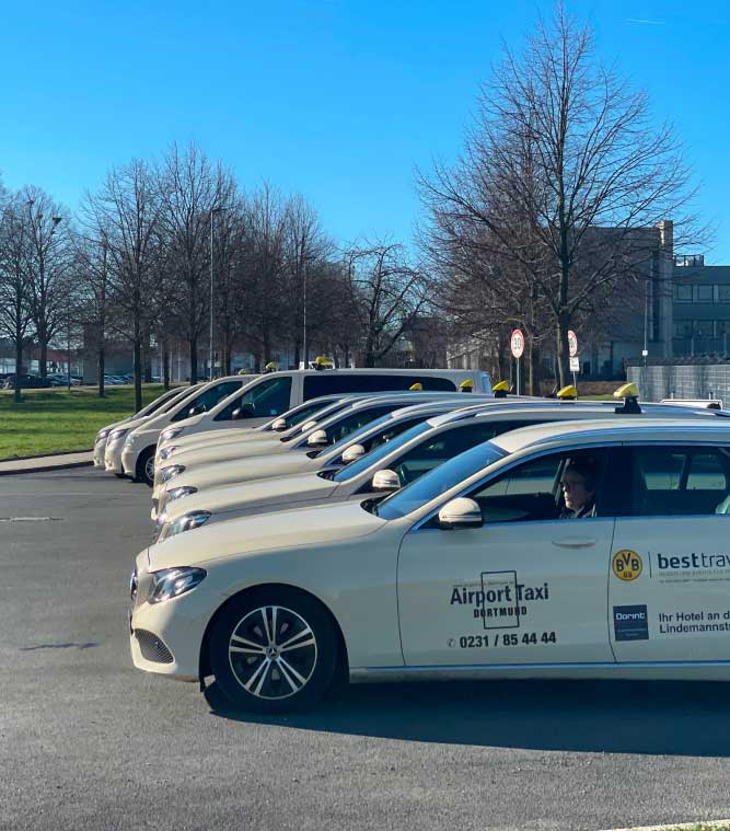WWir sind Ihr rundum flexibler Partner für komfortable Fahrten in Dortmund, ganz Deutschland und über die Grenzen heraus. Neben zuverlässigen Flughafentransfers bieten wir auch Taxi-Fahrten, Crew-Transfers, Hol- und Bringservice, Überführungsfahrten und VIP Service an. Auch unsere Großraumtaxis stehen jederzeit für Sie zur Verfügung. Unsere erfahrenen und professionellen Fahrer sorgen dafür, dass Sie sicher und pünktlich an Ihr Ziel gelangen, sei es in Düsseldorf, Amsterdam, Brüssel, Köln oder Frankfurt; wählen Sie einfach unser Taxi für Dortmund. Erleben Sie erstklassigen Service, der sich ganz nach Ihren Bedürfnissen richtet. Airport Taxi Dortmund – Wir bringen Sie nicht nur an Ihr Ziel, sondern schenken Ihnen eine sichere und angenehme Fahrt. Willkommen an Bord! Buchen Sie Ihr Taxi unter der Nummer 0231 85 4444.